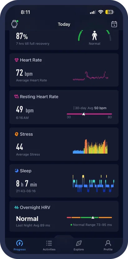 Know if your night might affect your climb with detailed sleep quality and HRV data.