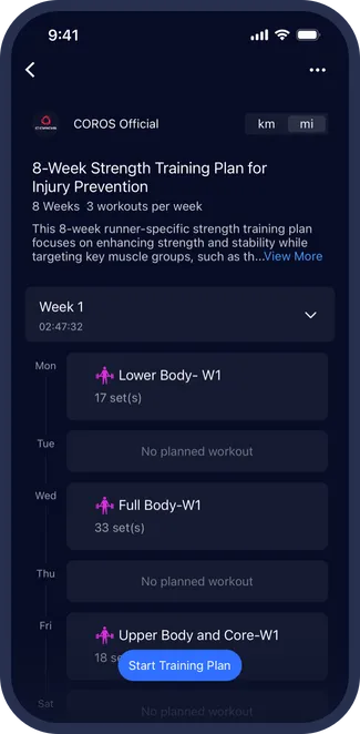 Easily build climbing workouts within the COROS app or Training Hub. Follow the workout on your watch for on-wrist guidance during your next session.